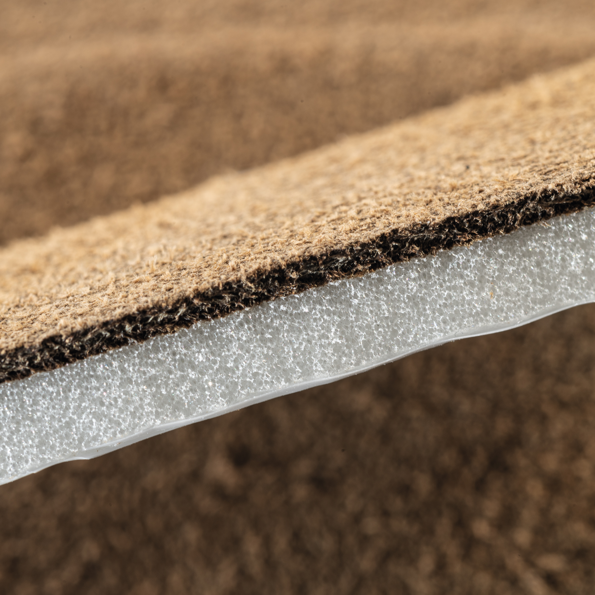 スープラの最大の特長は、その低反発素材にあります。圧のかからない状態で約5mmの厚みを持つこの素材は、靴の中で足の甲に触れると、その形状に合わせてじんわりと必要な分だけ沈み込みます。この特性により、まるでオーダーメイドの靴を履いているかのように、一人ひとりの足の甲の形にぴったりとフィット。足と靴の間にできてしまった隙間を自然に埋め、吸い付くような一体感を生み出します。
