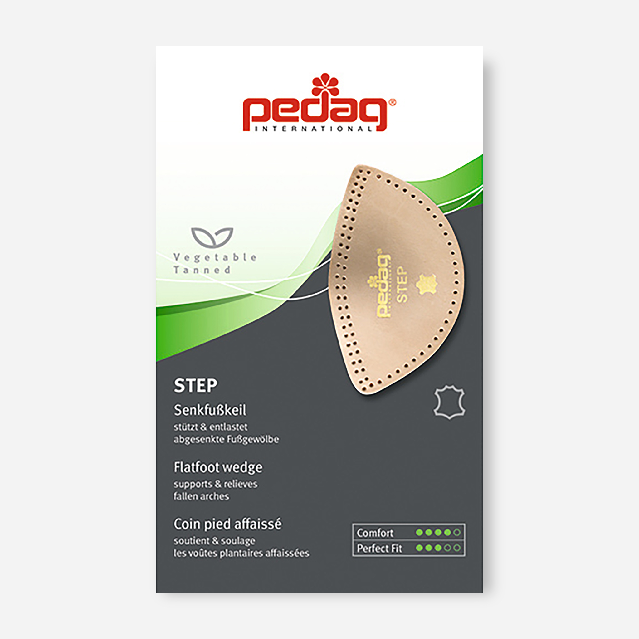 土踏まずをピンポイントで支えるウェッジパッド。土踏まずのアーチをサポートし、衝撃吸収モスラバーが歩行時の衝撃を和らげます。アーチサポートフルインソールのサポート位置が足に合わない方、靴にフルインソールを入れるゆとりがない場合に適します。