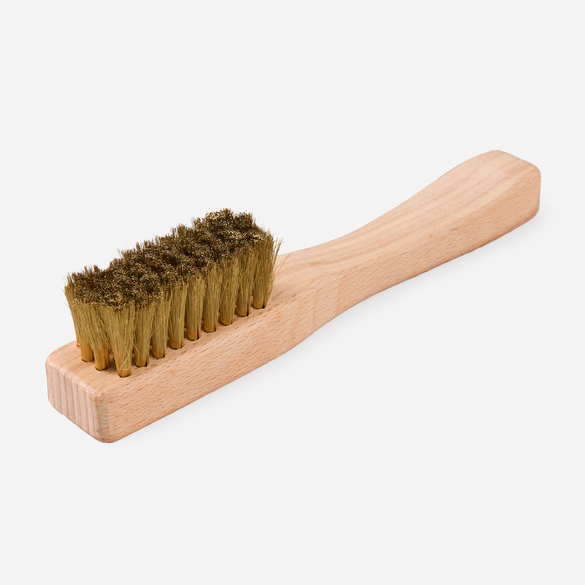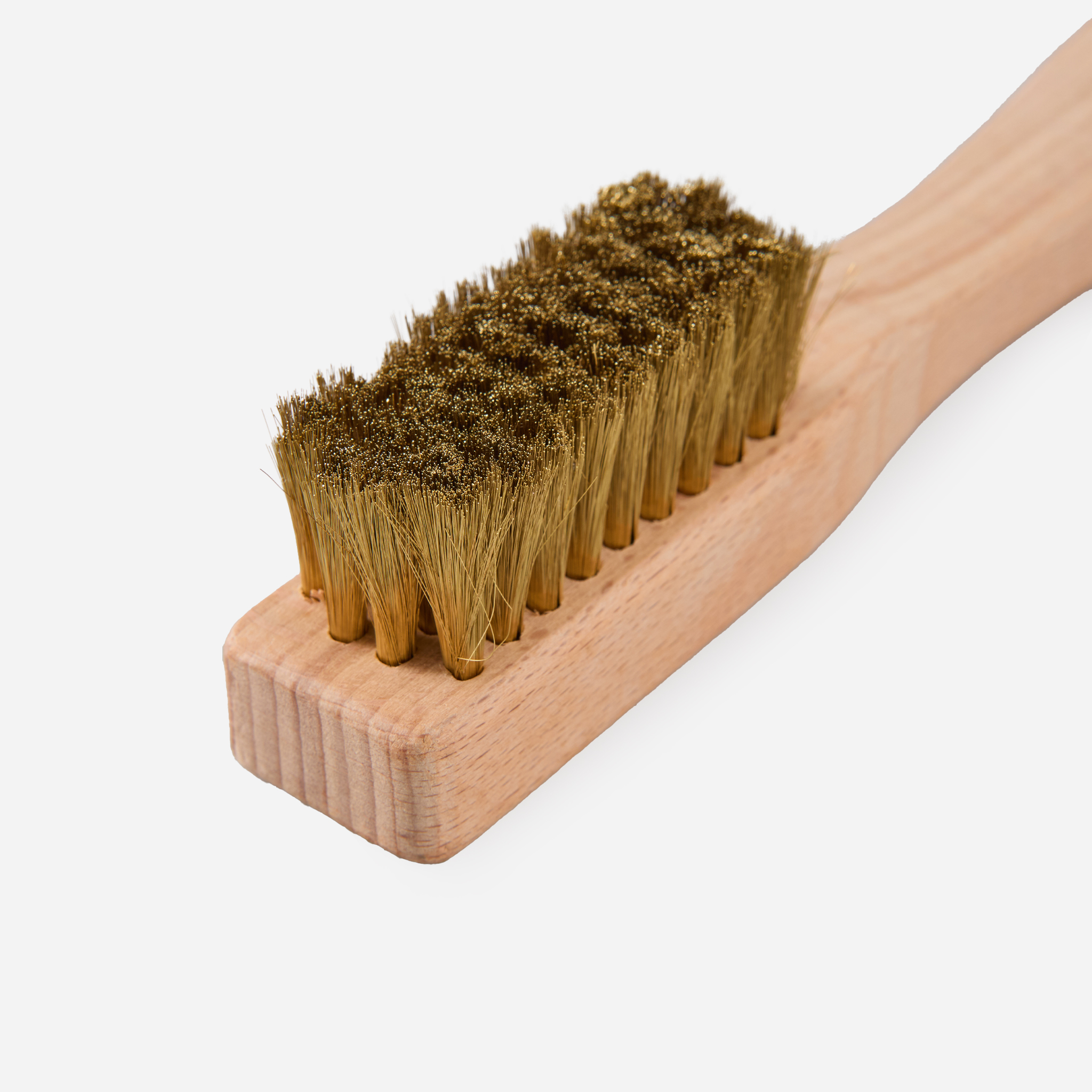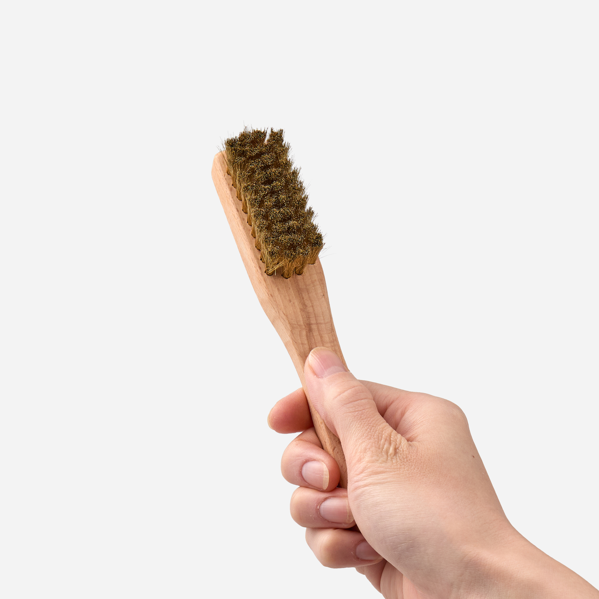 0.08mmの極細真鍮ワイヤーを高密度で植えることにより、起毛皮革を傷つけることなく隙間に溜まったホコリや泥汚れをしっかりと落とすことが出来ます。