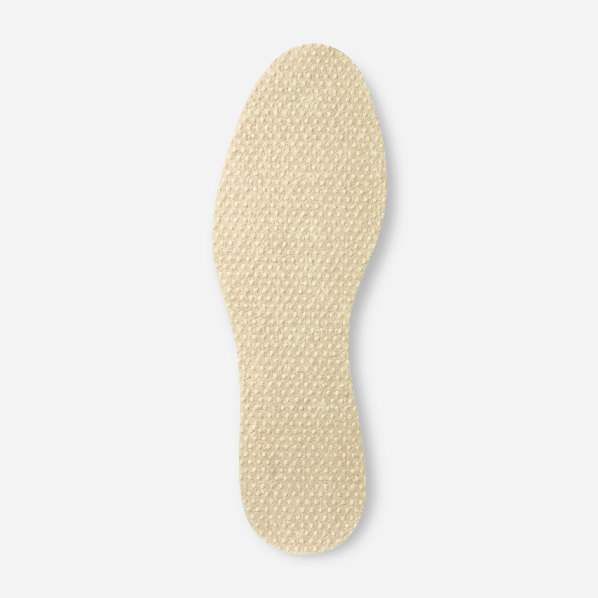 トップシートに100%メリノウールを使用した滑らかな履き心地のインソールです。メリノウールには、天然の保温・湿度調節機能があり、冬は暖かく夏は涼しく、年間を通して靴内を快適に保ちます。着用時の厚さは2mm 以下と大変薄く、靴内を圧迫せず様々な靴に使えます。裏面にはラテックスのドット加工が施され、インソールが靴内でズレにくくフィットします。