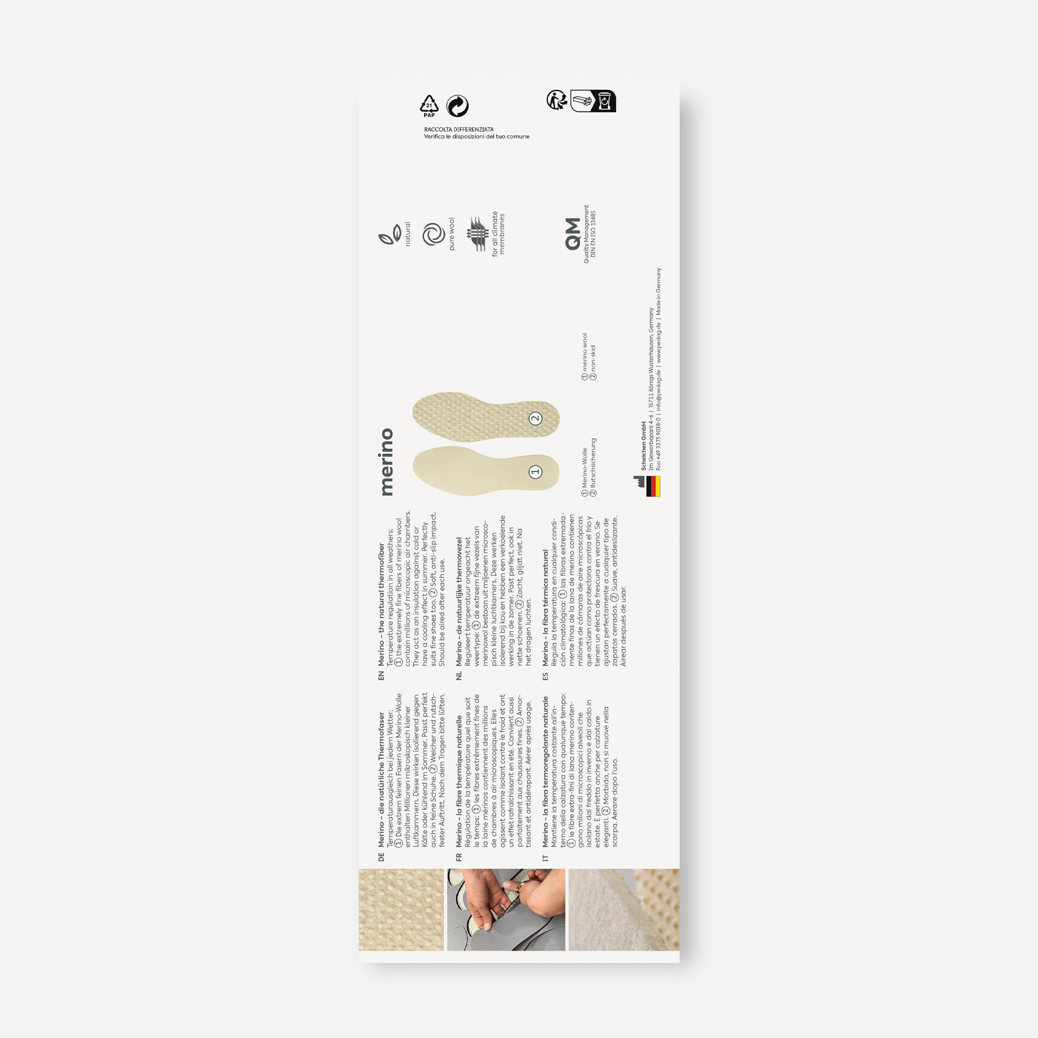 メリノウール 100%の薄型インソール
