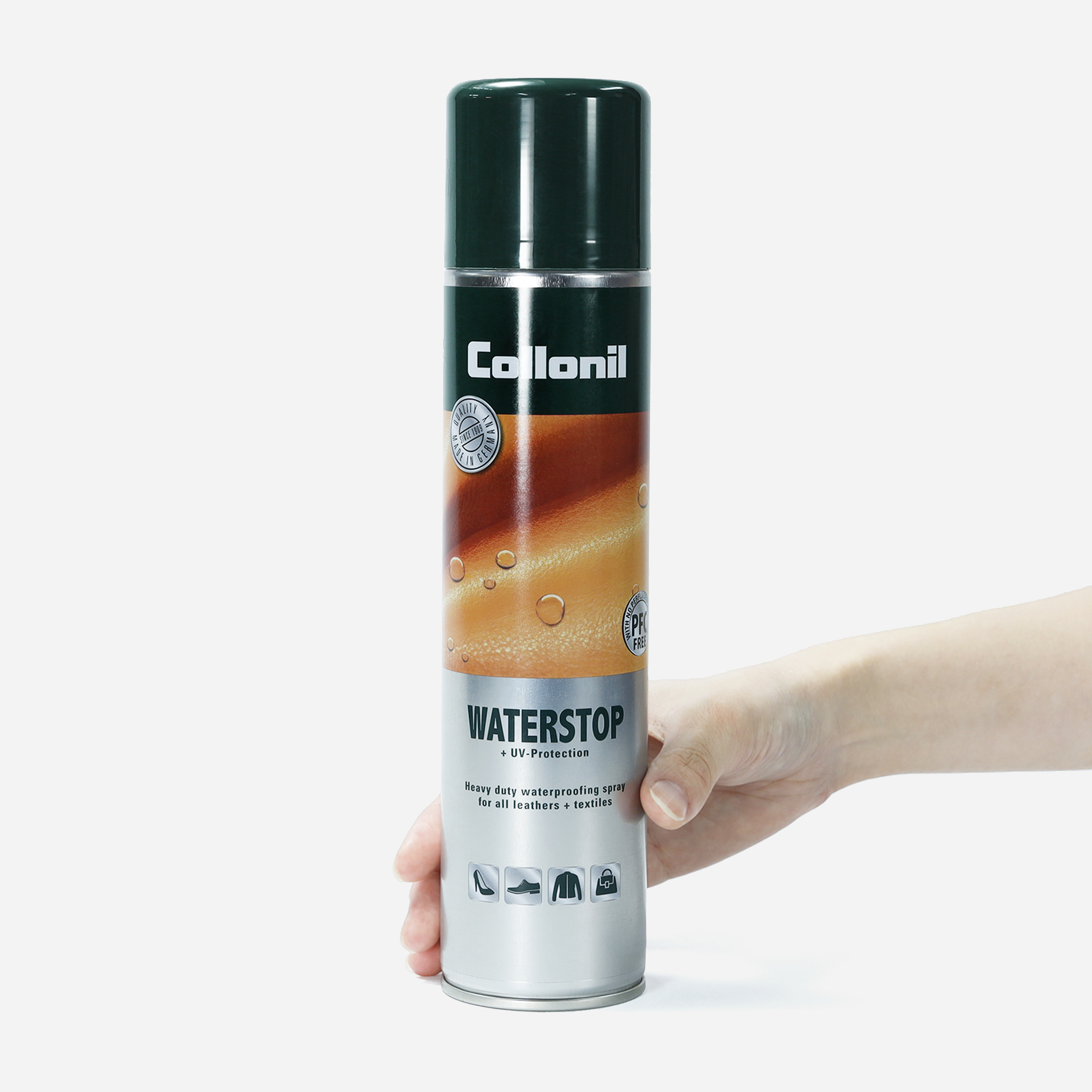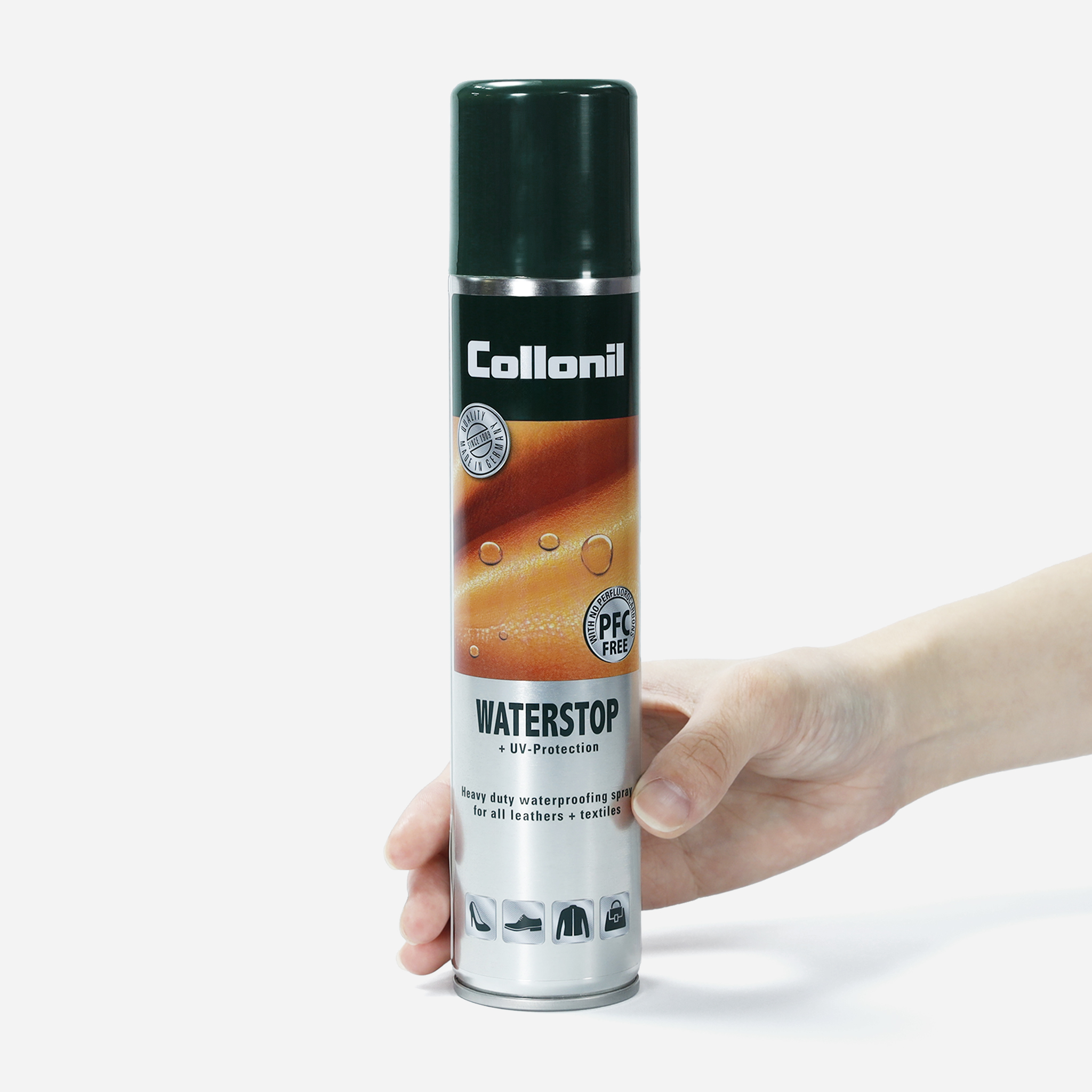 コロニルのオールマイティー防水スプレーがフッ素不使用になりました。使い心地はそのまま革、合皮、布、透湿防水素材などを守ります。