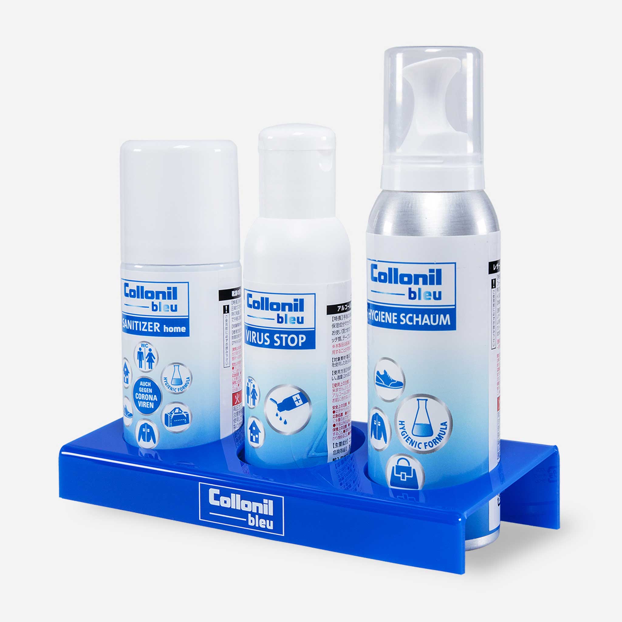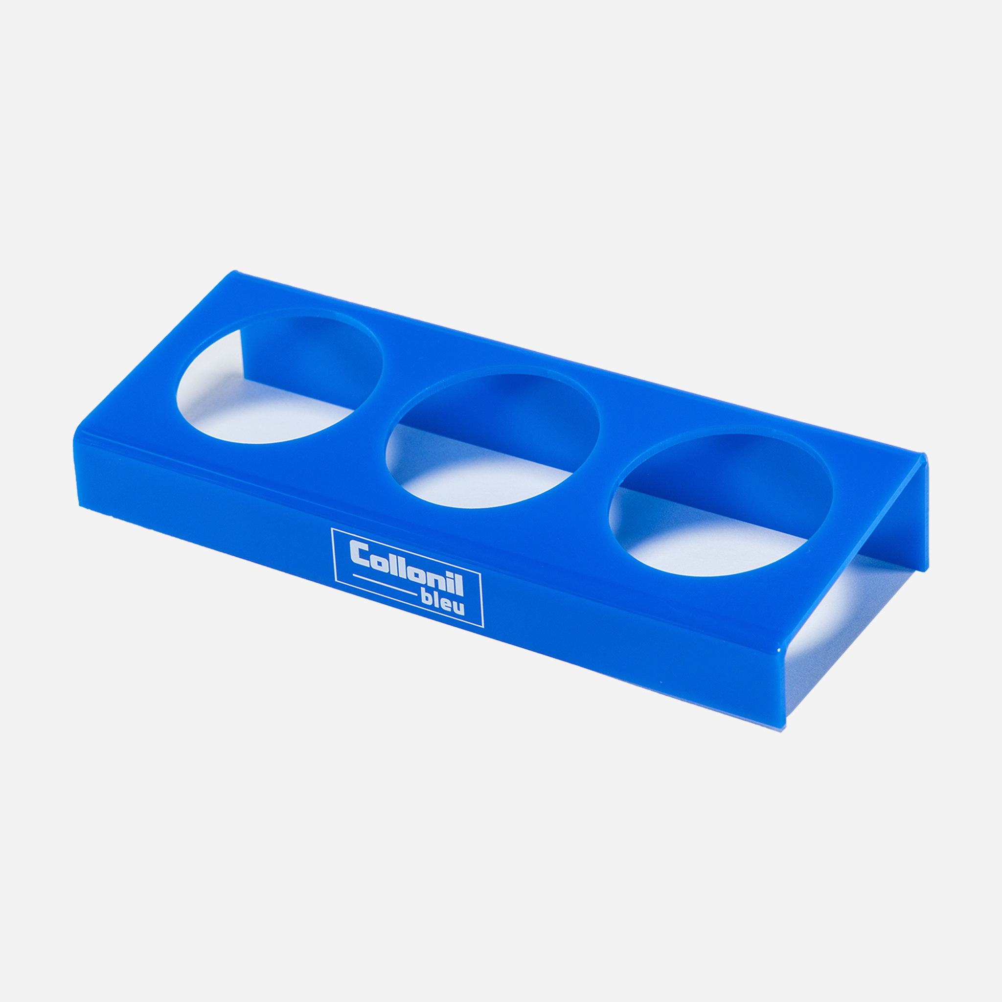 目を引く鮮やかなブルーのアクリル素材が、商品をより一層引き立てるディスプレイ什器です。透明感のある素材は、商品をあらゆる角度から見やすくし、洗練された印象を与えます。ブランド「Collonil bleu」のロゴを前面に配し、上質なイメージを演出し、ブランドの訴求力を高めます。