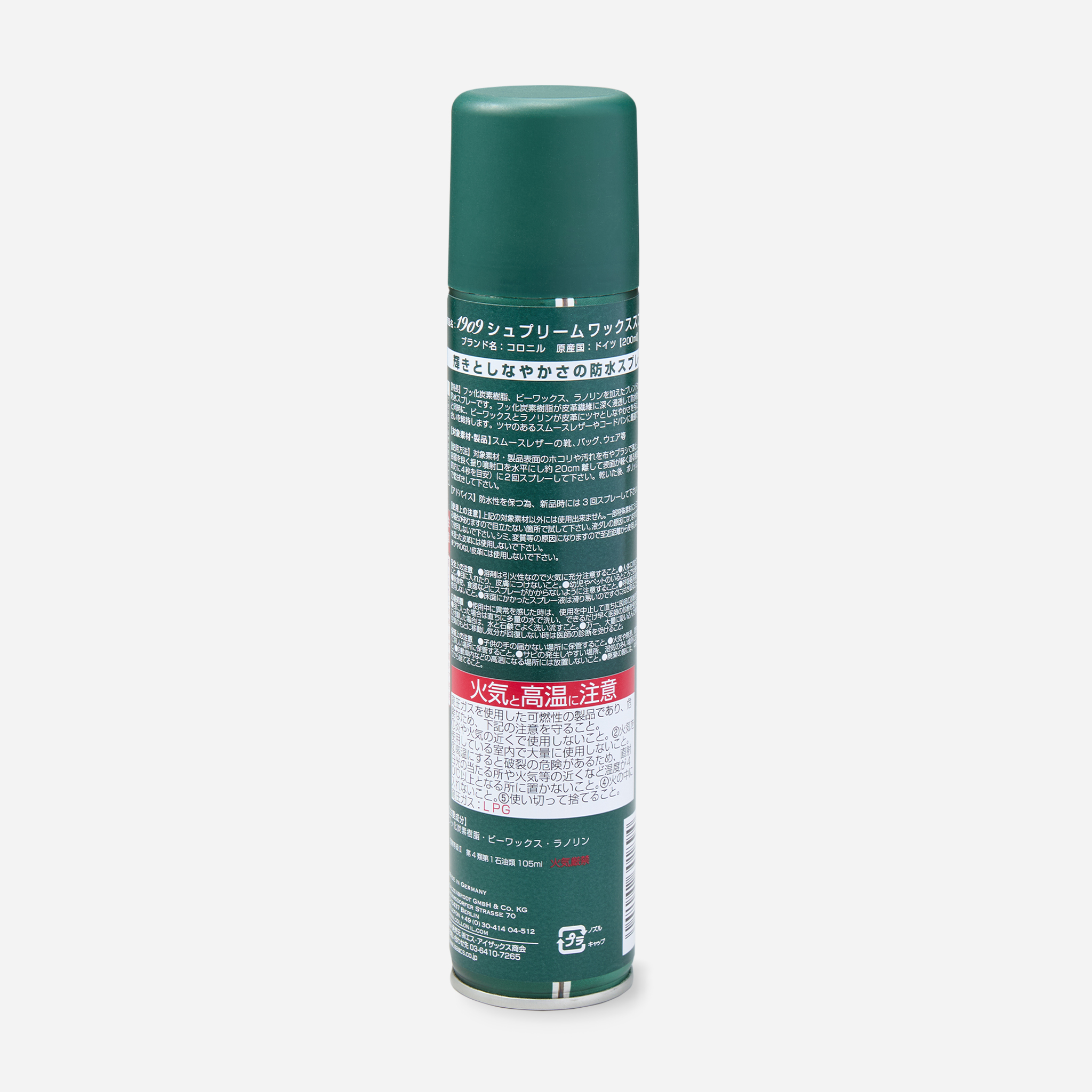 フッ化炭素樹脂、ビーワックス、ラノリンを加えたブレンドオイルを含む防水スプレーです。