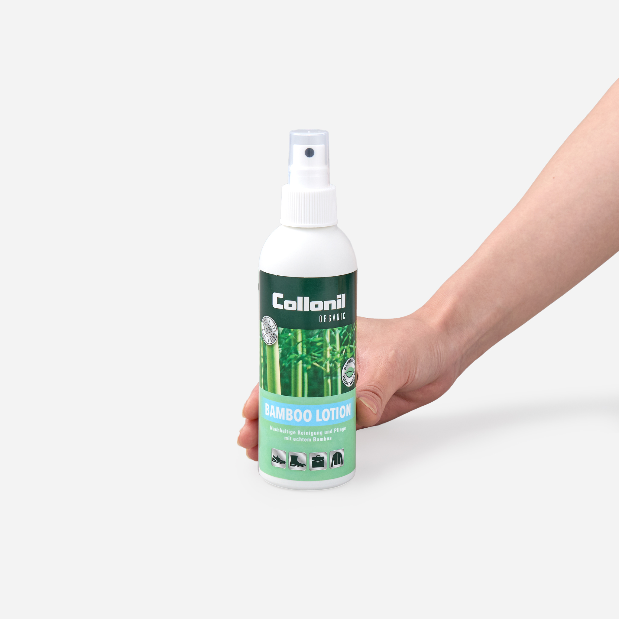 バンブーエキスの保湿効果により、クリーニングと同時に素材に潤いを与え乾燥から守ります。