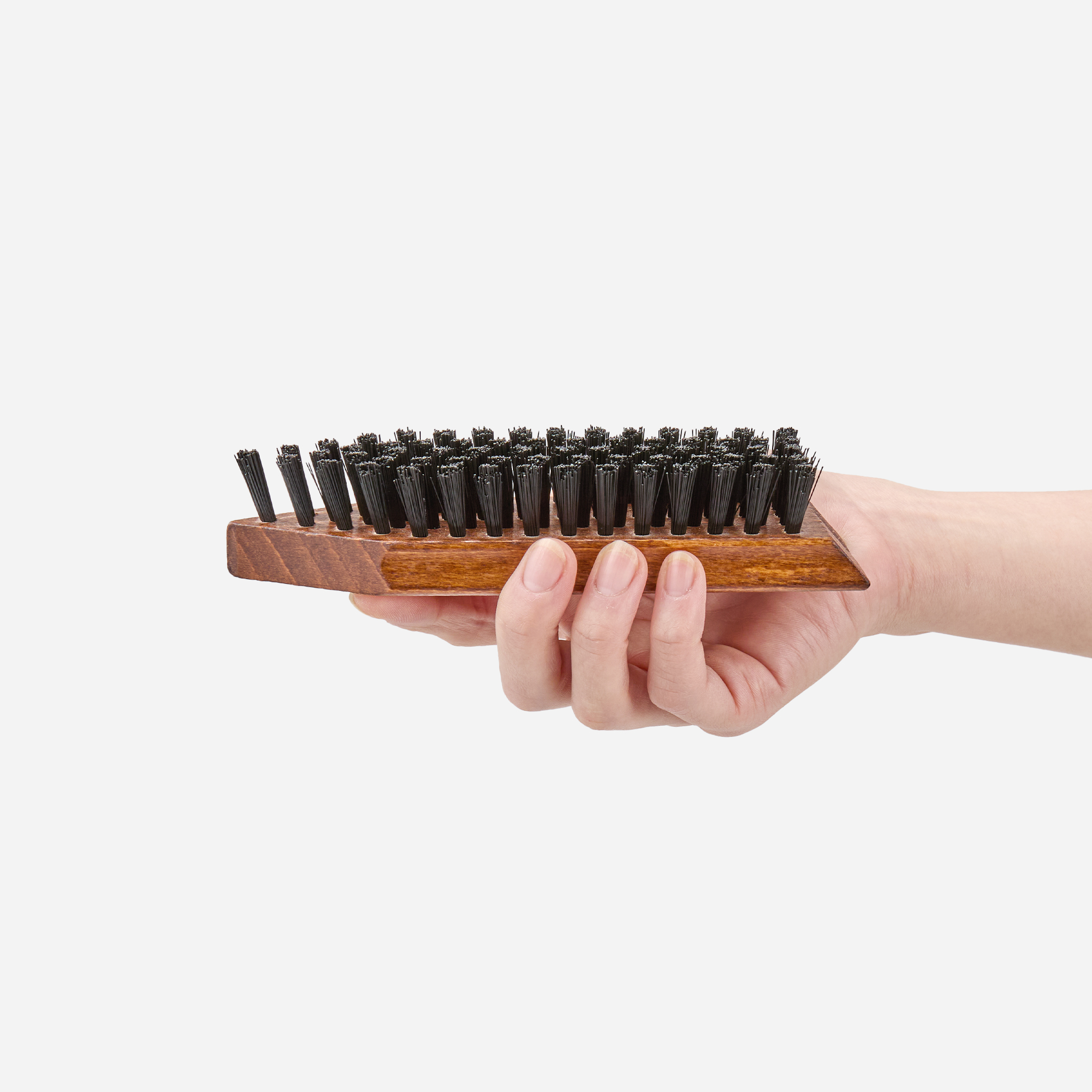 硬いナイロン製ブラシがワークブーツなどに付着した泥汚れをしっかりと落とします。