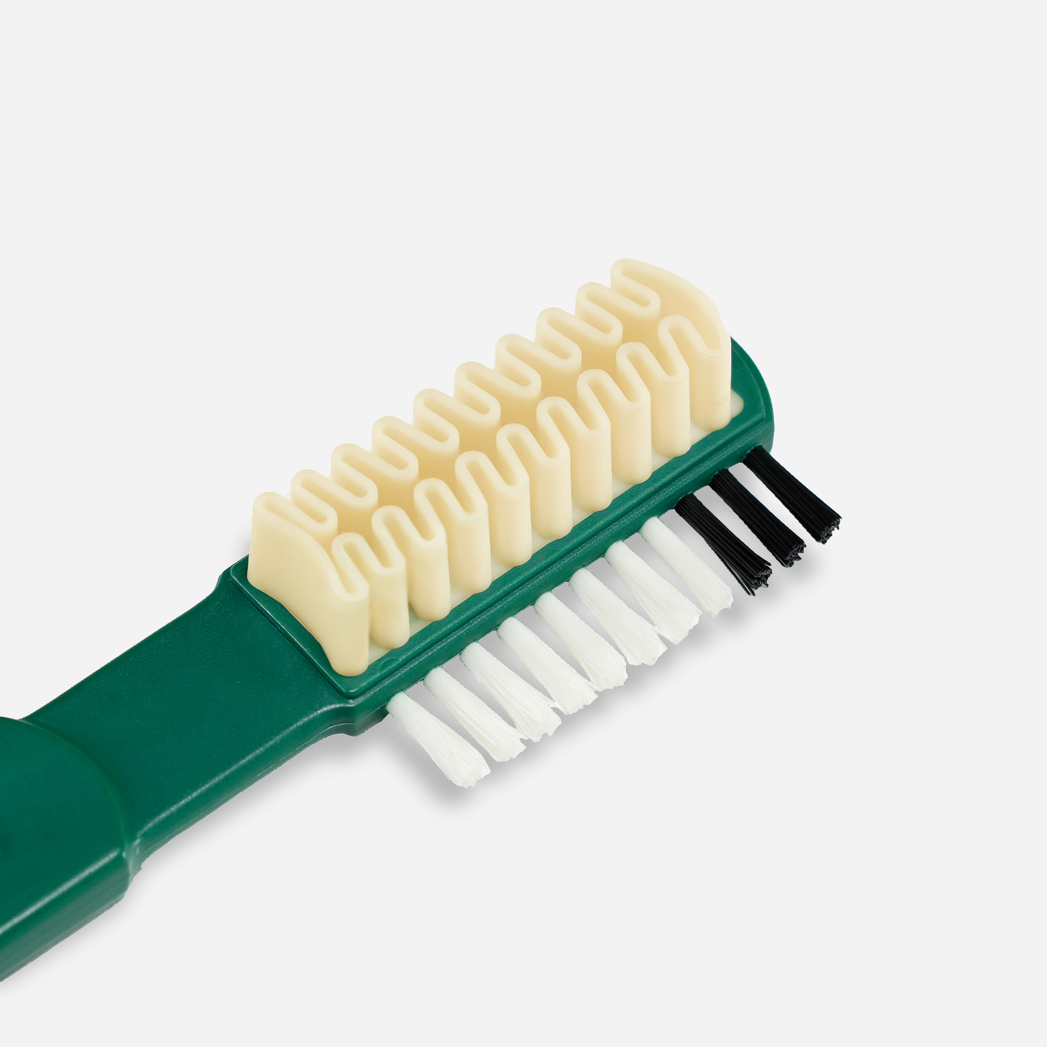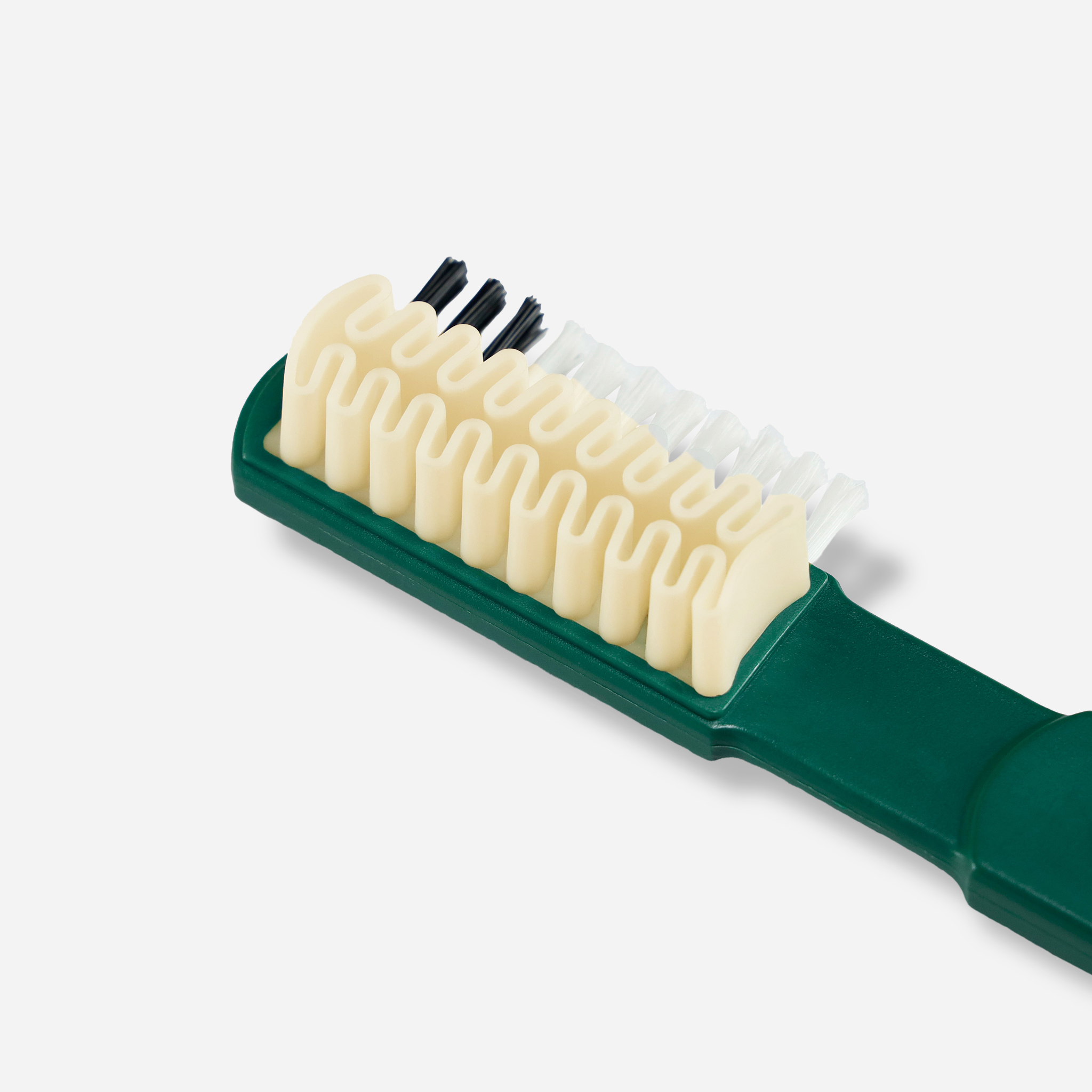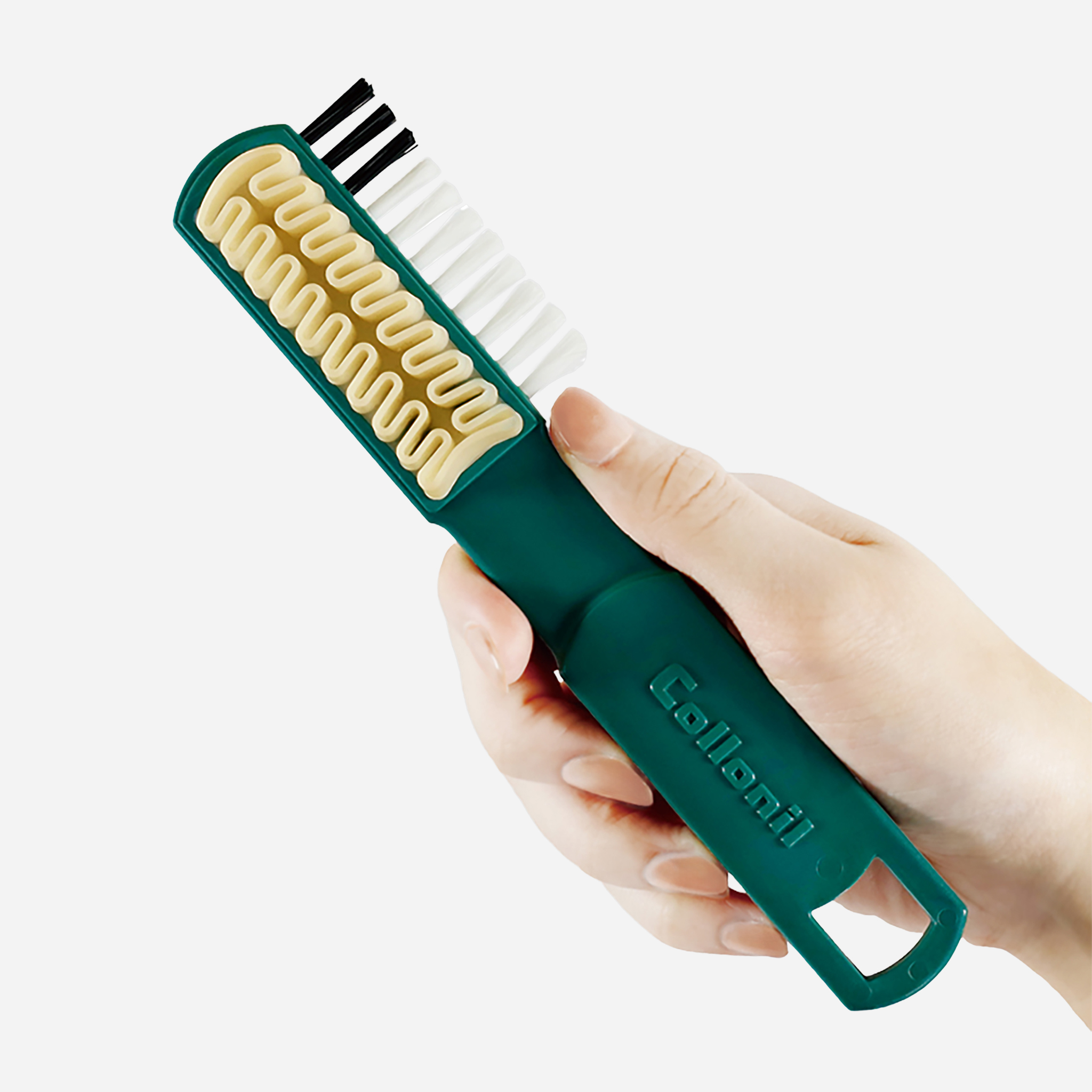クレープ部分はスウェード・ヌバック等起毛皮革の汚れ落とし、サイドのナイロン毛は毛並を整えるのに使い分けができます。